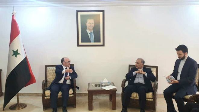 بحث وزير التعليم العالي والبحث العلمي الدكتور بسام إبراهيم مع السفير الإيراني بدمشق مهدي سبحاني علاقات التعاون المشترك في مجال التعليم والبحث العلمي.