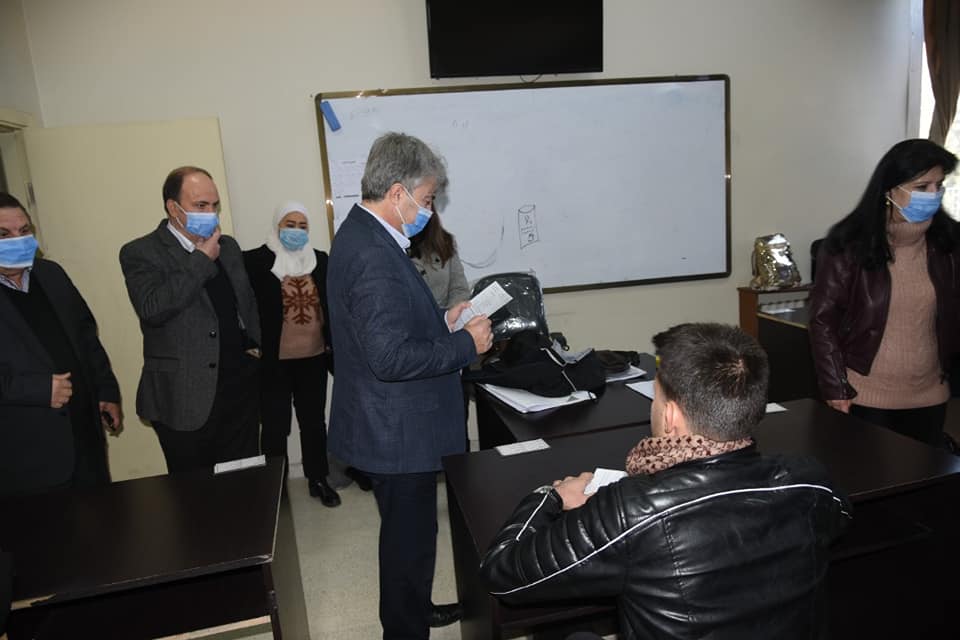 بلغ عدد المتقدمين /٣٥٠ /طالبا وطالبة من مختلف الاختصاصات،واطلع م. ماشفج على مدى توافق الأسئلة الامتحانية مع المقررات و الالتزام ب بالإجراءات الاحترازية للحد من انتشار وباء “كورونا” حرصا على سلامة الطلاب والكادر التدريسي, متمنيا لهم النجاح والتوفيق.